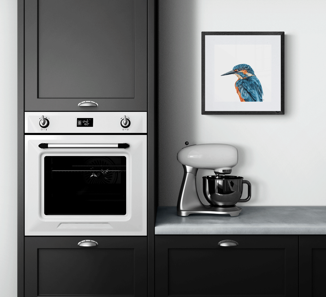 The print can be mounted in a standard frame, or for an enhanced look, pair your textured print in a 12"x16" frame with a smooth white mat board. Shown in a Hovsta frame from IKEA.