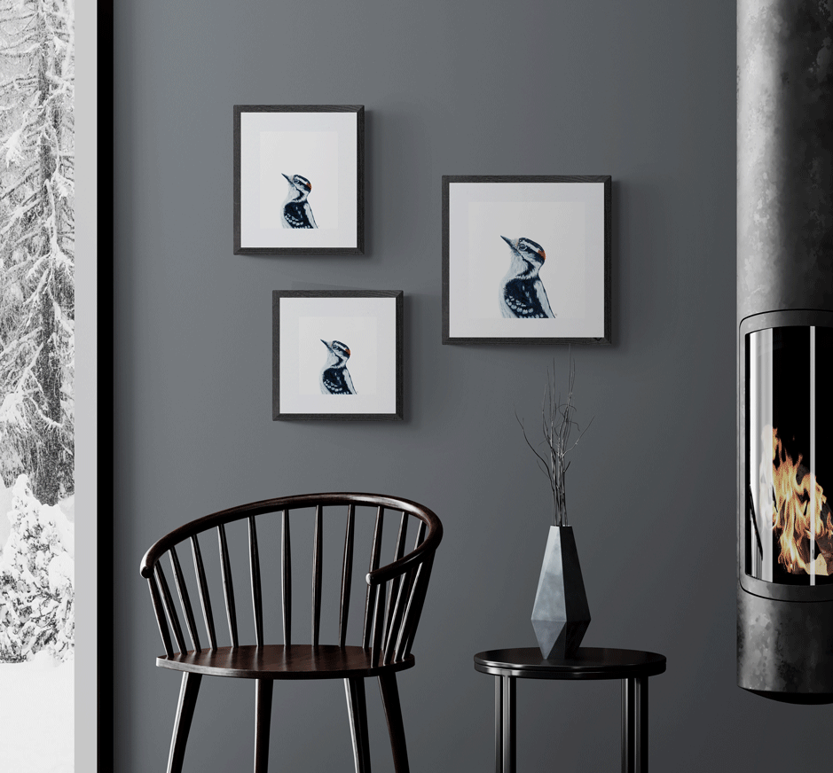 The print can be mounted in a standard frame, or for an enhanced look, pair your textured print in a 12"x16" frame with a smooth white mat board. Shown in a Hovsta frame from IKEA.
