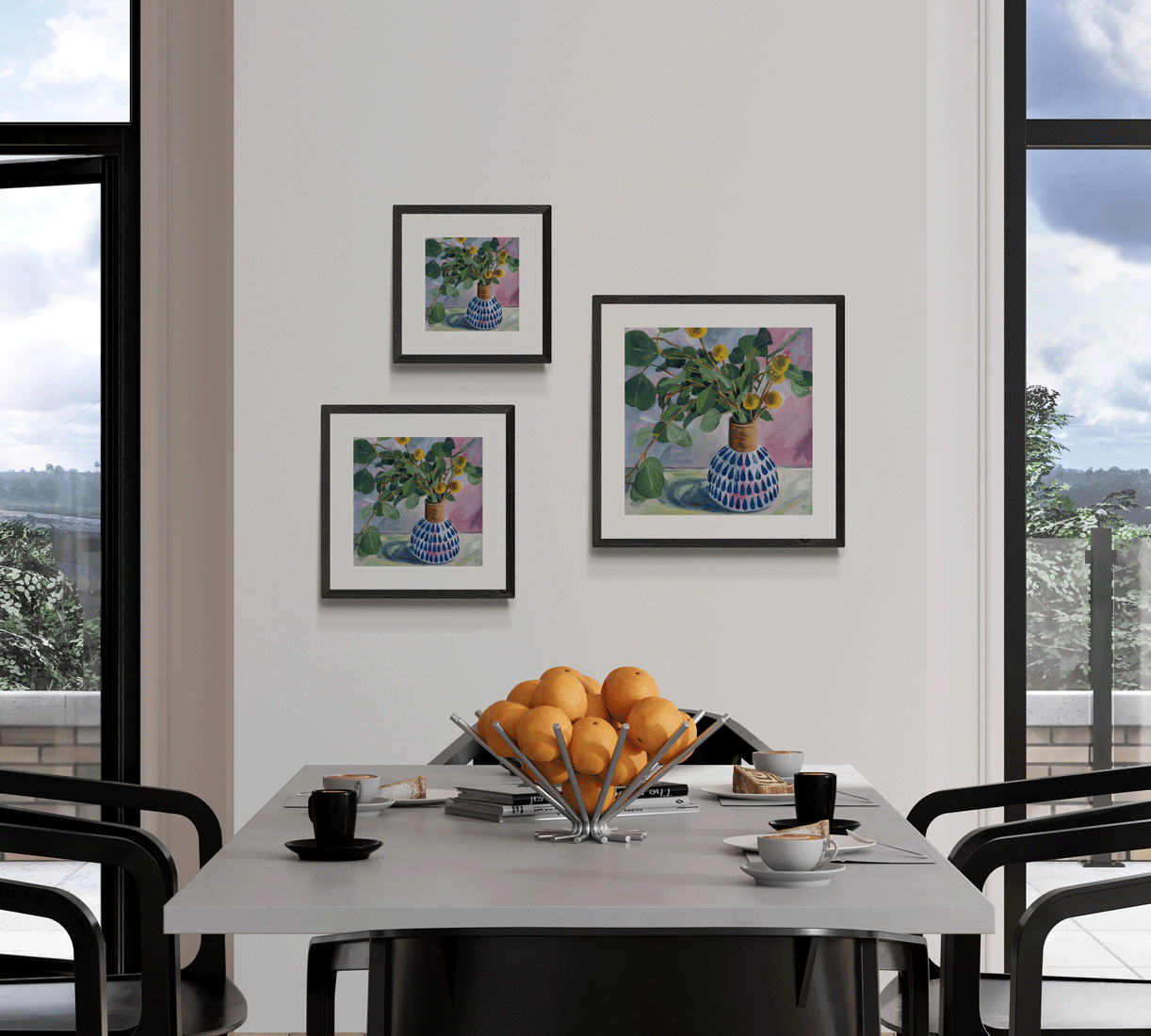 The Floral collection is reproduced in a museum-grade giclée print featuring cold press natural 100% cotton rag media with a heavy weight of 340 gsm. The media has a lovely texture and great color rendition.