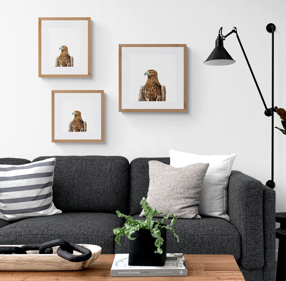 To achieve high-quality reproductions of the original paintings, my studio uses an archival museum-grade method of printing known as giclée. The Birds of a Feather collection is reproduced on a cold press natural 100% cotton rag media with a heavy weight of 340 gsm, free of acid, lignin, chlorine, and optical brightening agents. The media has a natural warm tone with a lovely texture that looks and feels like the original painting.