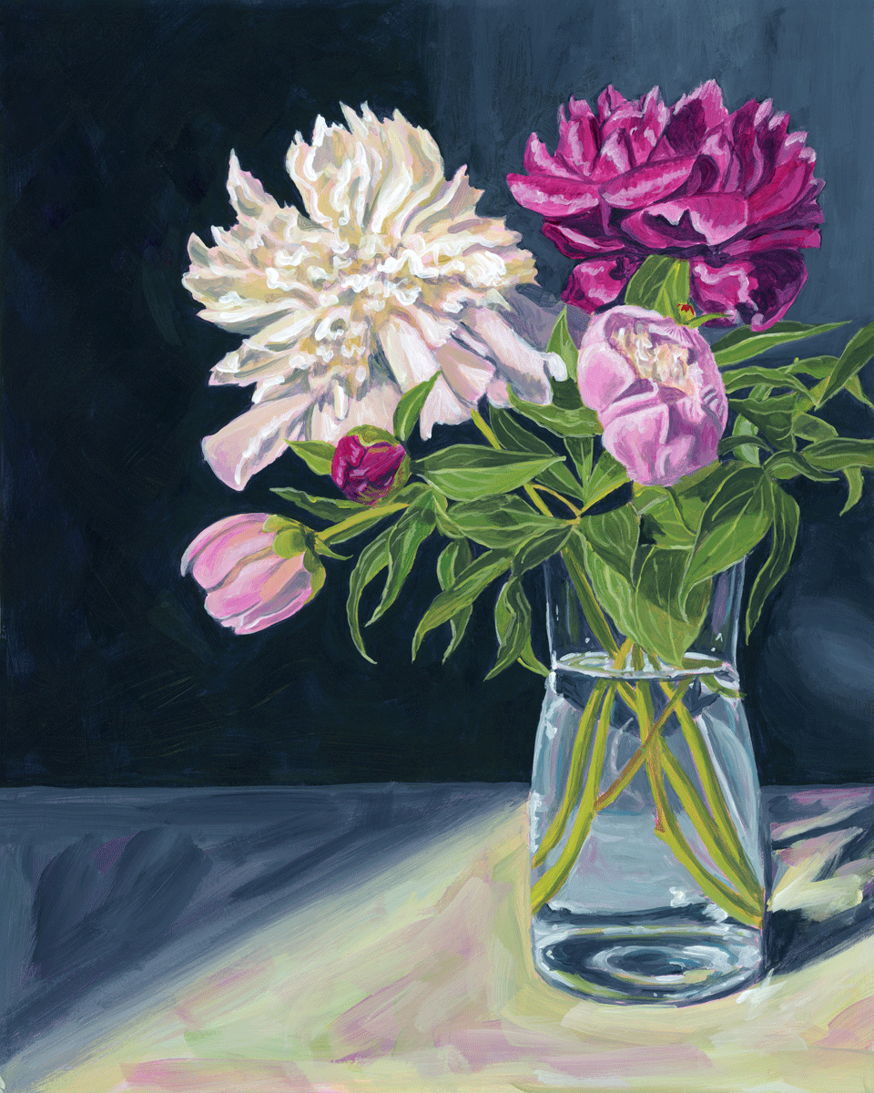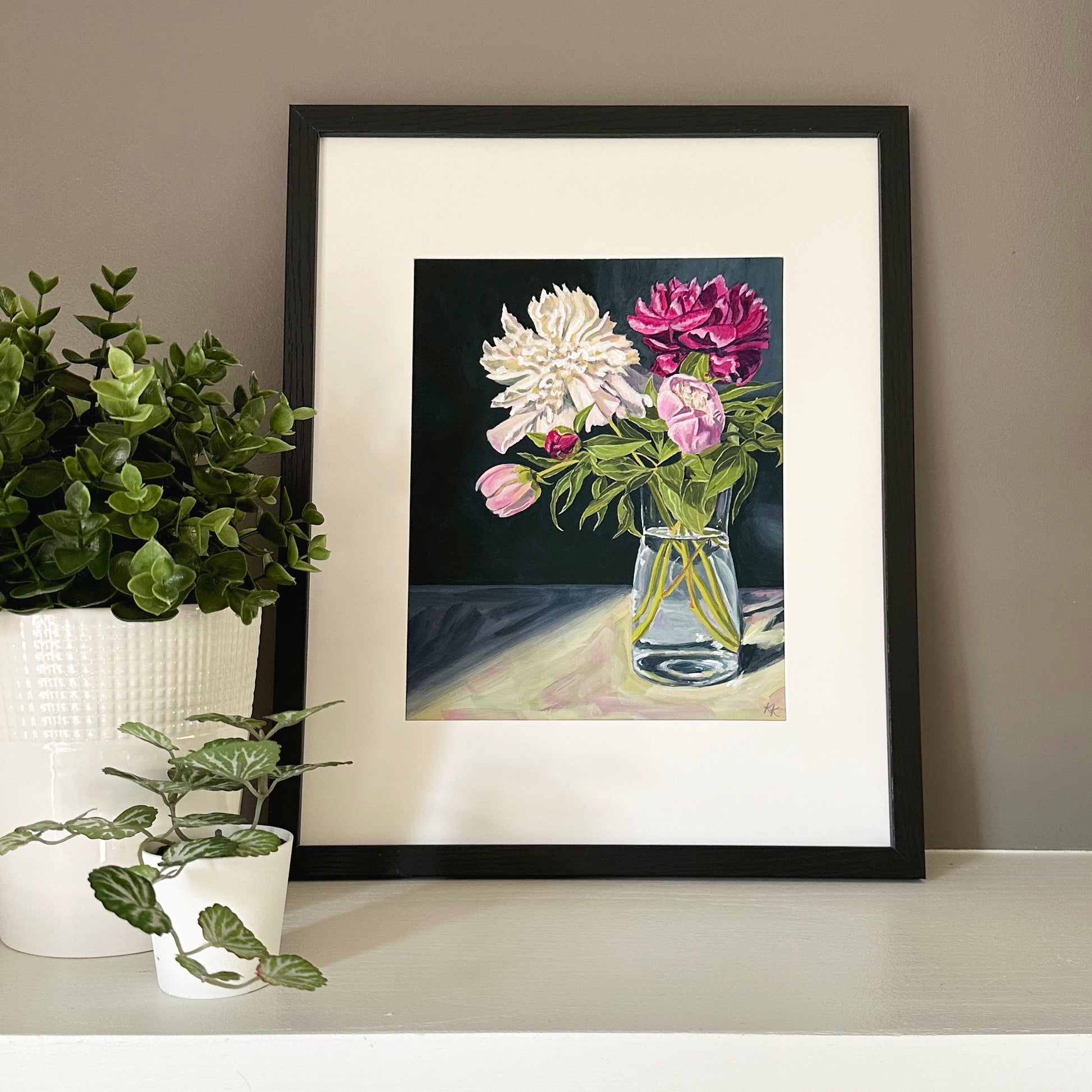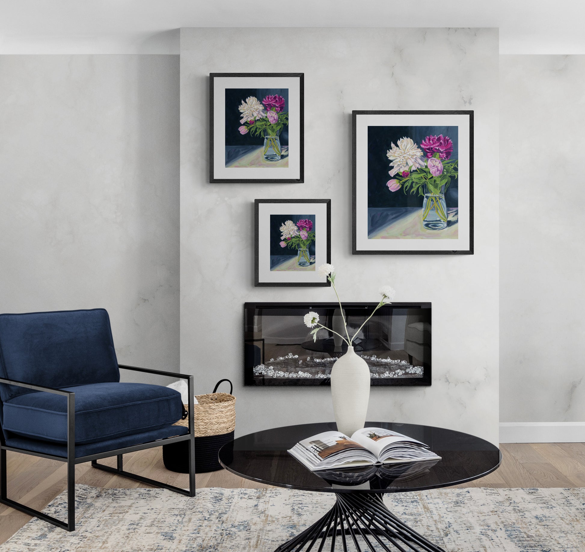 The Peony collection is reproduced in a museum-grade giclée print featuring cold press natural 100% cotton rag media with a heavy weight of 340 gsm. The media has a lovely texture and great color rendition.