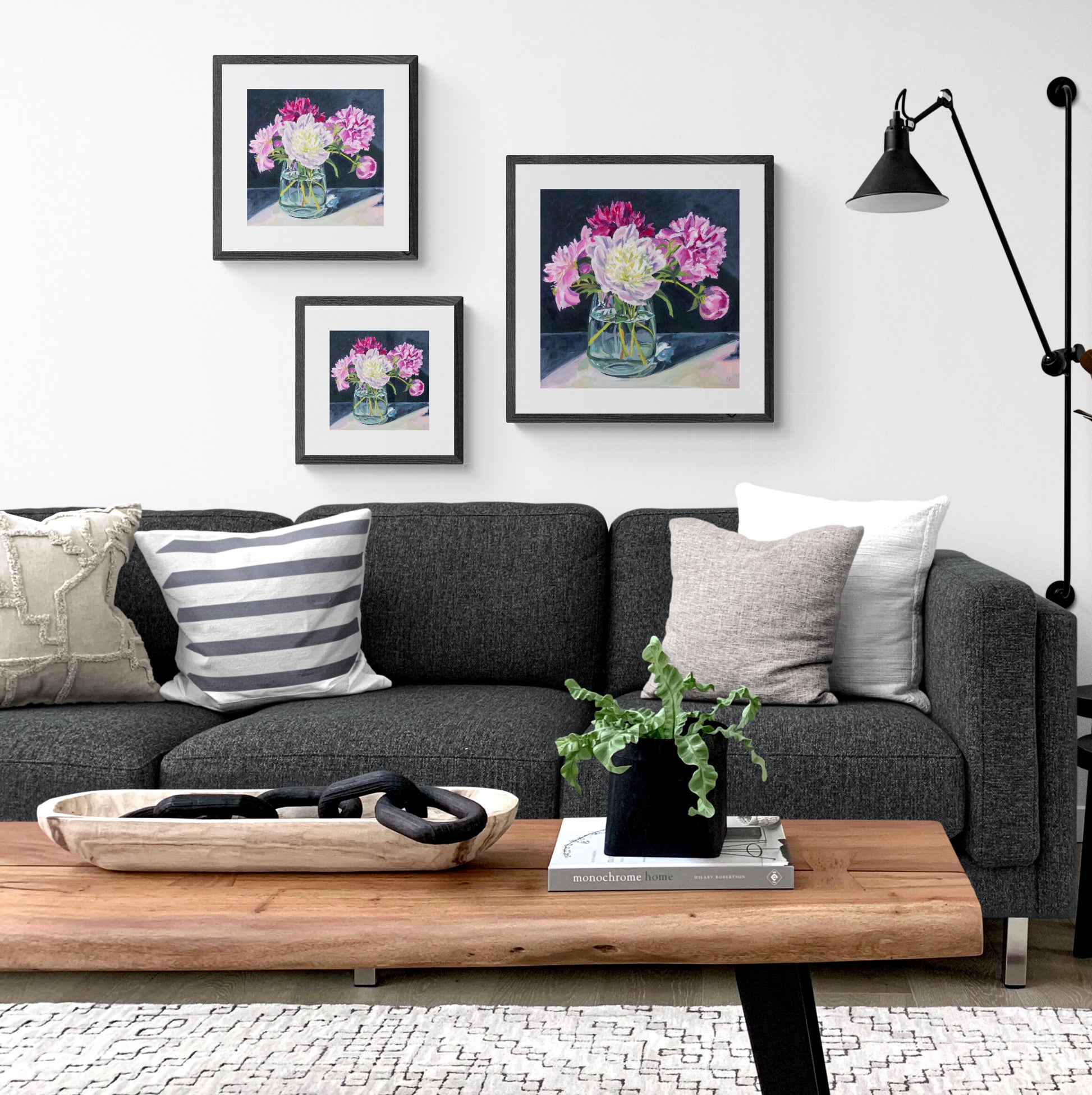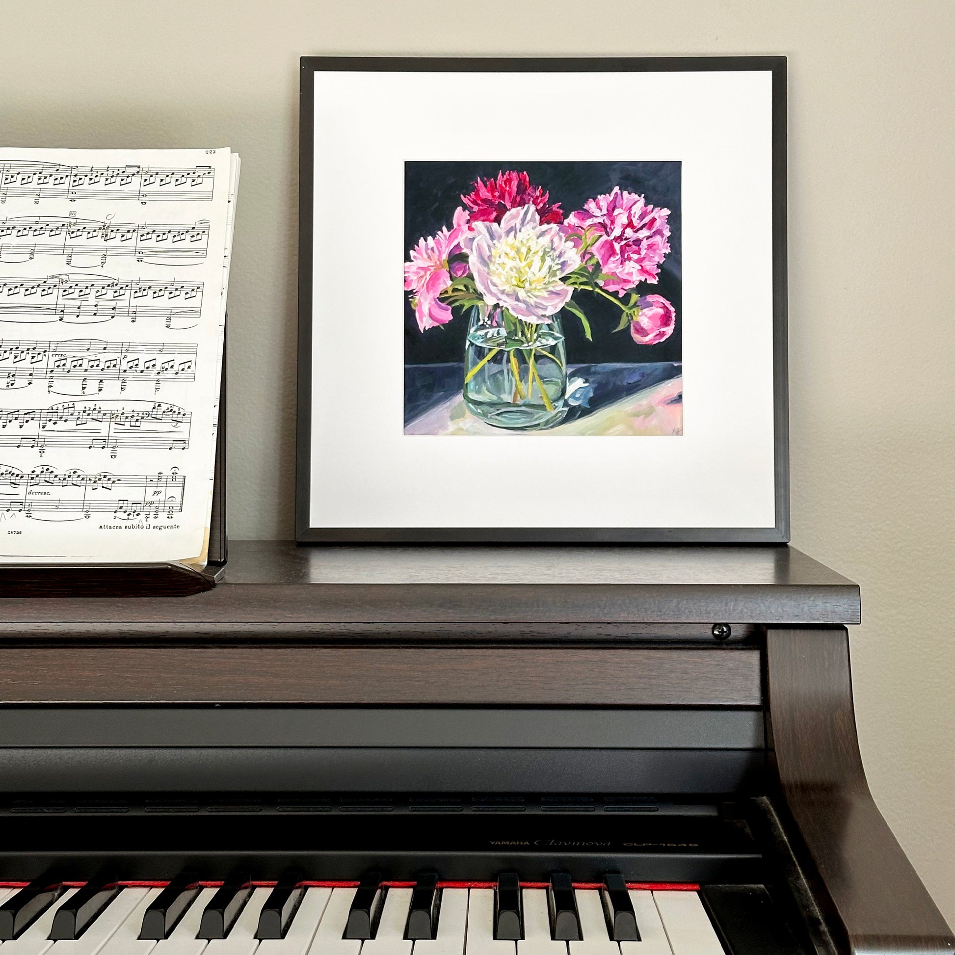 The Peony collection is reproduced in a museum-grade giclée print featuring cold press natural 100% cotton rag media with a heavy weight of 340 gsm. The media has a lovely texture and great color rendition.
