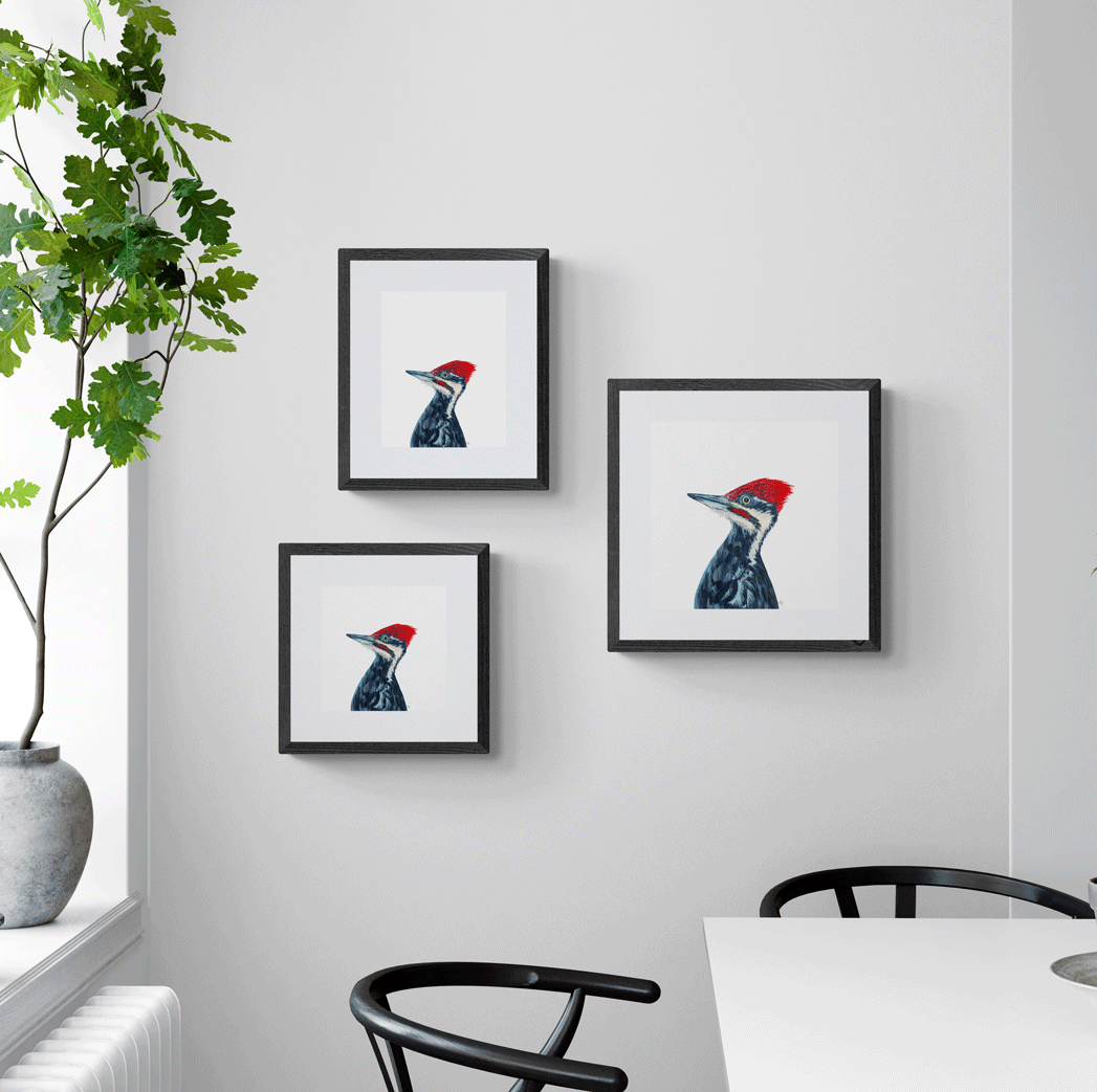 For an even distribution, select an 8"x8" print that can be mounted with a subtle white border. Shown in a 12"x12" Lomviken frame from IKEA.