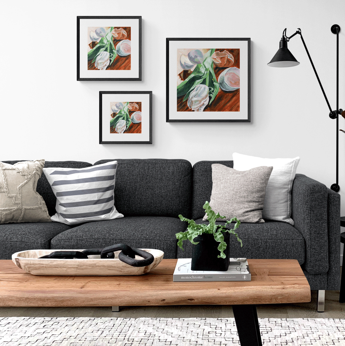 To add variety, you can pair an 8"x8" and an 8"x10" print side by side.
